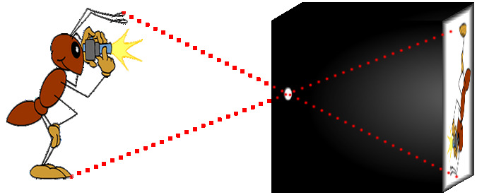 Sie besteht aus einem innen geschwärzten Kasten, in den durch ein kleines Loch Licht auf die gegenüberliegende transparente Rückwand trifft.