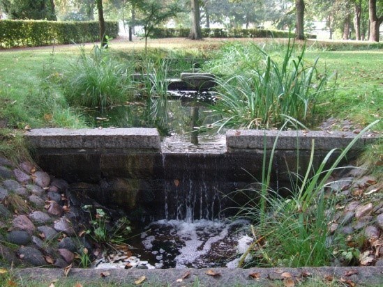 Stadsparken har även ett fantastisk fint dammsystem som beskrivs nedan. Det renar dagvattnet och förhindra att förorenat vatten rinner ut i Gamlebyviken