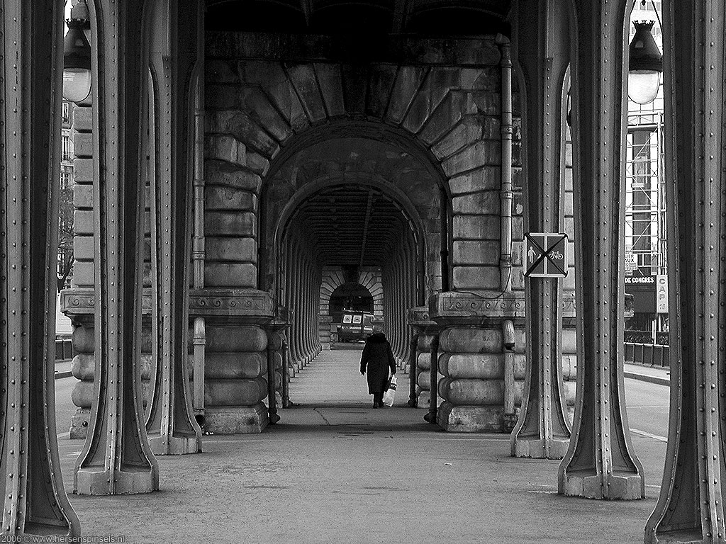 · le viaduc ferroviaire est supporté par des colonnades métalliques, sauf au débouché de l’île aux Cygnes, où il repose sur une arche en maçonnerie ;