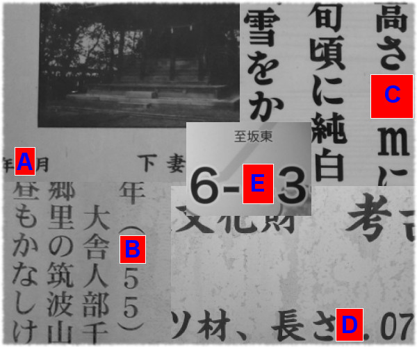 表示の座標は大宝八幡宮を指していますが、そこにこのキャッシュはありません。神社の境内にはいくつかの説明板があります。それらを探して下に示すFig. 2のA-Eの値を見つけてください。キャッシュの設置場所は次のとおりです。