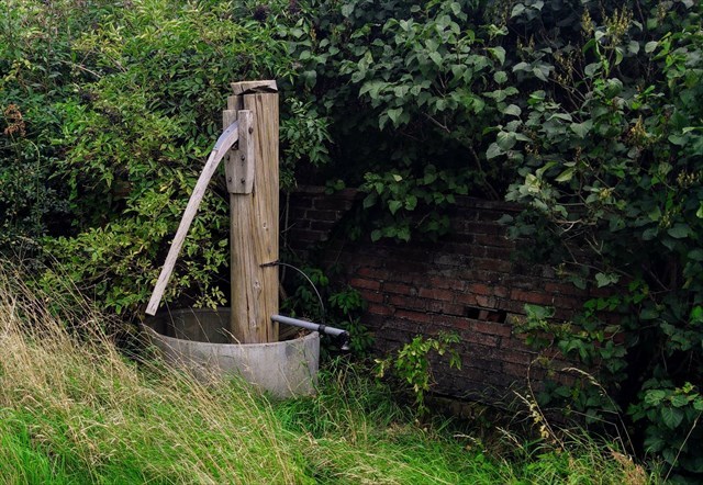 Eine alte hölzerne Pumpe am Wegesrand ... hier haben wir als Kinder Rast gemacht und uns erfrischt, wenn wir mit dem Fahrrad nach Eula zum Eisessen gefahren sind.