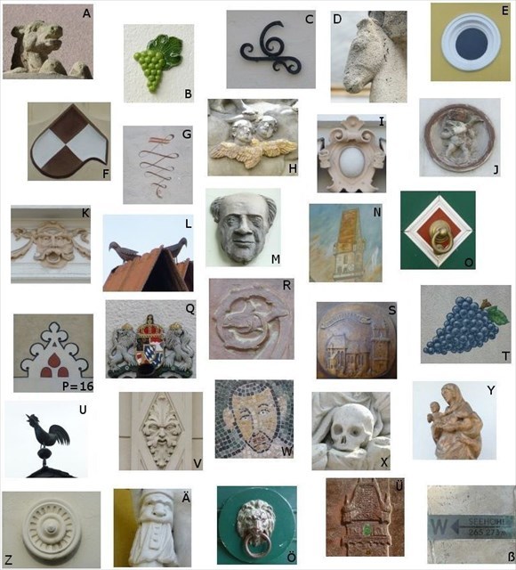 Kommen Objekte (etwa an einer Fassade) mehrfach vor, gilt das erste Vorkommen dieses Objektes. Um zu Variablen für die Formel zu kommen, müsst ihr jedem Objekt eine Nummer zuordnen. Die Nummer entspricht jeweils der Reihenfolge, in der ihr an dem Objekt vorbeigekommen seid (Beispiel: Wenn Objekt P das 16te Objekt war, an dem ihr vorbeigekommen seid, dann wäre P=16).