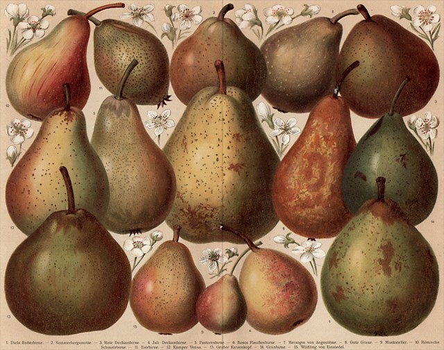 Birnen sind sehr gesund und wohlschmeckend, so dass im Laufe der Zeit vielerlei Birnensorten gezüchtet wurden. Im 17. Jahrhundert kannte man in Frankreich an die 300 Sorten, im 19. Jahrhundert war man schon bei 1000 angelangt. Die heutige Anzahl wird auf 5000 geschätzt und es gibt viele Sorten, die oft nur noch von Liebhabern alter Obstsorten erhalten werden. Einige haben klangvolle oder auch sehr ulkige Namen wie z.B. Williams Christ, Conférence, Kaiser Alexander und Gute Luise als bekanntere Sorten, ferner Clapps Liebling, Frühe von Trevoux, Stuttgarter Geißhirtle, Comtesse de Paris, Gute Graue, Köstliche von Charneu uvw.