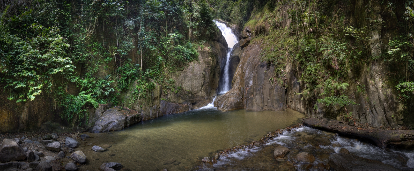 The trail is clear and follows the river, but you have to cross the river five more times. So you must be prepared to get wet feet and probably more... Kampung Adidas are very useful here. After rainfall the water level can reach until your waist and the current can be strong. Take care, especially with children.