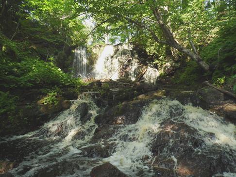 When you reach the split in the trail, (located at 47°10.377’ N, 088°26.894’ W) you will follow it upstream, to the right, to view the Upper Falls. Following the trail downstream, to the left, will allow you to view some more of the geology along the trail, which includes two more waterfalls – bonus!