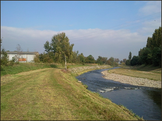 "Když přijdou velké deště a moje hladina se zvedne, tak se na tomto místě vždycky ráda rozmáchnu. Ten pozvolný oblouk mi dává takovou volnost, mám pocit, jako bych rozhodila vlasy a uvolněně pokračuji dál." Uvědomil jsem si, že mi místní říkali, že když nahoře na toku dojde k rychlému vypuštění, tak povodňová vlna vždycky v tomto místě spláchne přilehlý areál a pak se zas vrátí do koryta. Rychle jsem tu myšlenku zahnal, protože řeka vyprávěla dál.