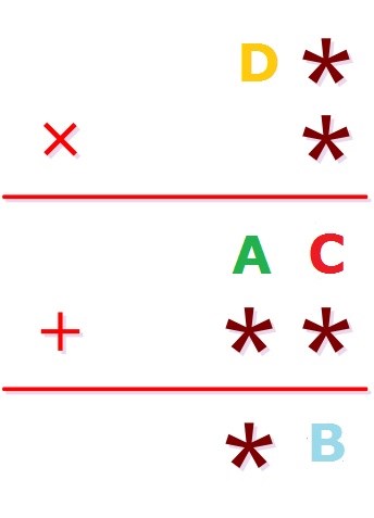 Základem je vyluštit následující šifru. Místo hvězdiček a písmen doplňte číslice.