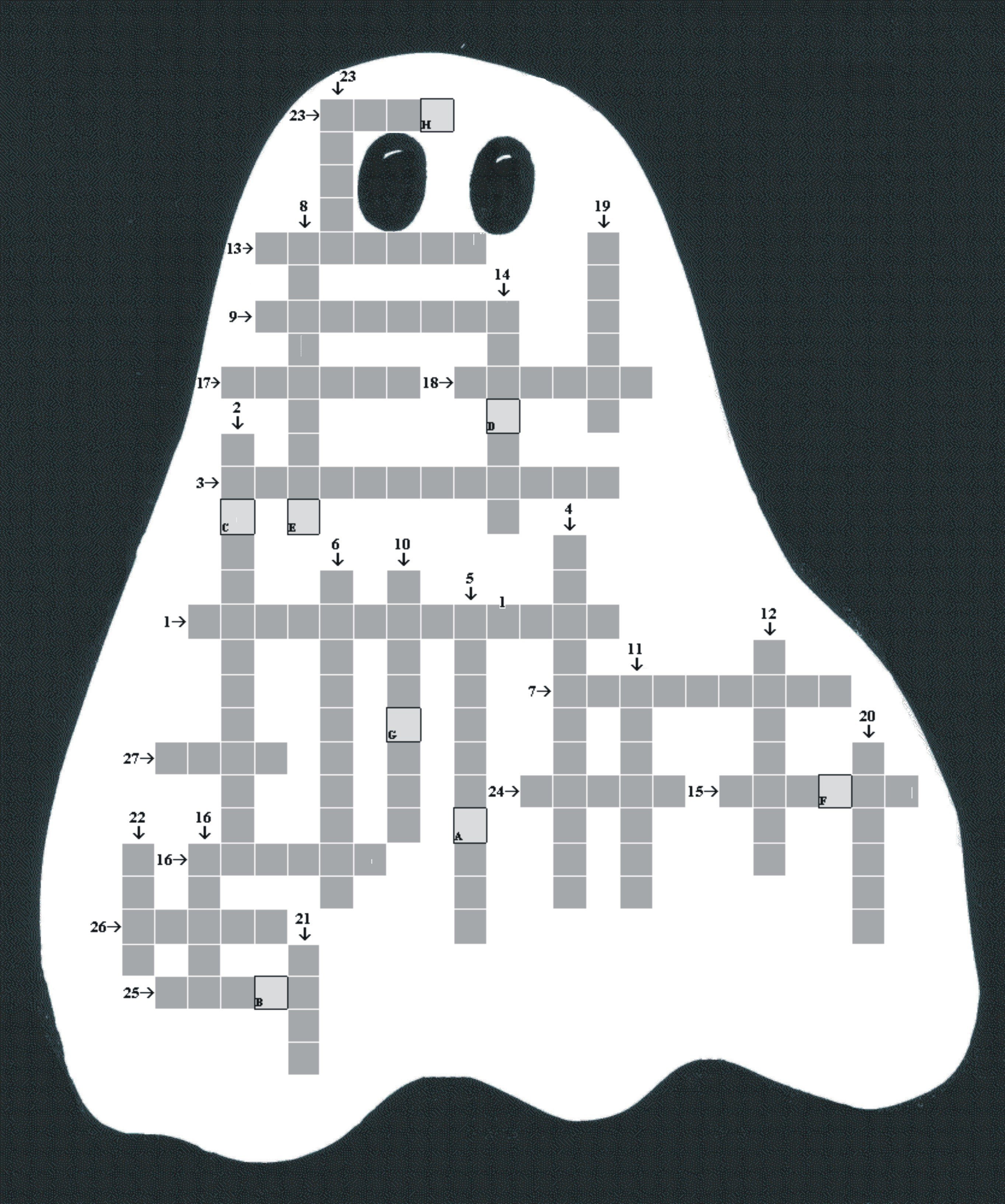 Zuerst muss das folgende Gespenstergitter gelöst werden. Dieses wurde von Mr. Chapel zur Verfügung gestellt. Nun kannst du die Buchstaben A-H in Zahlen umwandeln (A=1, B=2,...) Zusätzlich ist die Frage, wie oft kommt der Buchstabe "E" in diesem Gitter vor, diese Antwort soll X sein. Ihr solltet die Lösung mitnehmen, Ihr werdet sie noch benötigen. Koordinaten-Formel: N51°(A)(H-D).(A*(B*X)-(D+F)*G) --- E006°(E-D)(H-D).(X*(F+D)-B-H)