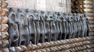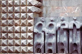 Las dos fotografías que están a continuación, corresponden al Santuario de Ntra. Señora de Aranzazu (Guipúzcoa). Las figuras corresponden al apostolado que hay en el frontis de entrada, cuyo autor es también Oteiza. Es interesante que las esculturas son también "huecas". Si deseas ampliar conocimientos, puedes acceder aquí.