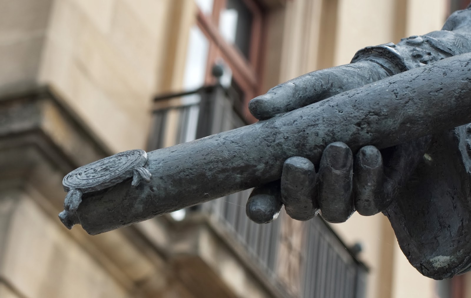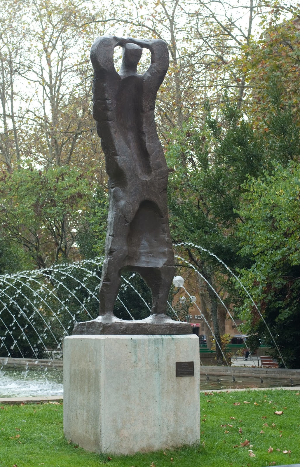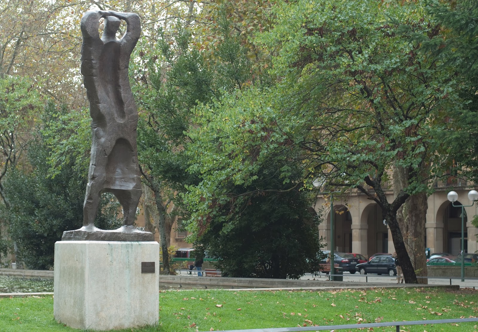 Sin embargo no nos olvidamos de la escultura que representa a Carlos III el Noble. Es evidente que su autor no es Jorge Oteiza, pero la incluimos por lo que representa su figura, así como por el valor escultórico de la misma. Está realizada en bronce y fundida a la cera perdida. El monarca está de pie en actitud de entregar el Privilegio de la Unión con el que en 1423 consiguió pacificar a los burgos pamploneses (Navarrería, San Cernin y San Nicolás). Porta el documento en su mano derecha, en tanto que dobla la izquierda hacia el pecho con gesto solemne. Buen conocedor de la estatuaria clásica y renacentista, el artista madrileño, Francisco López Hernández es uno de los más genuinos representantes del realismo escultórico contemporáneo español. La inauguración del monumento tuvo lugar el 8 de septiembre de 2004, fecha en la que Pamplona conmemoró el 581 Aniversario del Privilegio de la Unión. Cfr. José J. Azanza L.