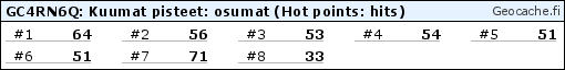 Koordinaatit selviävät TdK 2013 -wherigosta, jos matkan polkee tasan päivässä tai hitaammin. Moisille ajoillehan ei sitten mitään kilpailuja pidetä, eli ihan turha ilmoitella tuloksia.