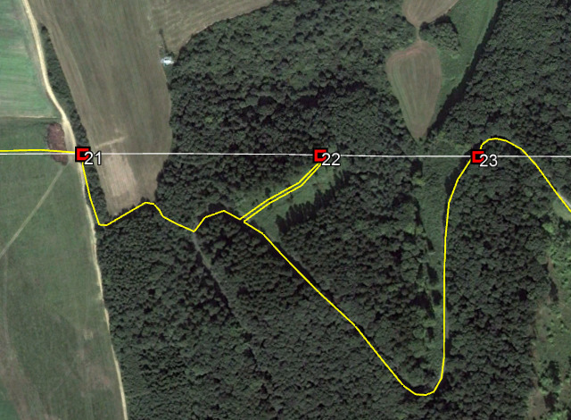 V lete 2018 som sa pustil znovu do práce a pripravil 23 skrýš s napojením na Župčanskej hure, kde som pred 4 a pol rokom skončil s číslom #21. Číslovanie z východu na západ sa v tomto mieste mení zo zostupného na vzostupné, lebo skoro všetky nižšie čísla sú už obsadené východnejšie. Tým sa otvára možnosť ťahať rovnobežku ďalej na západ neobmedzene. Pri plánovaní série využívam hlavne Google Earth, kde si rovnobežku vyznačím a ukladám na ňu body tak, aby bol dodržaný minimálny rozostup 161 m a zároveň, aby umiestnenie nevyšlo v poli. Pri zakladaní skrýš vytyčujem N-súradnicu a zameriavam E-súradnicu.