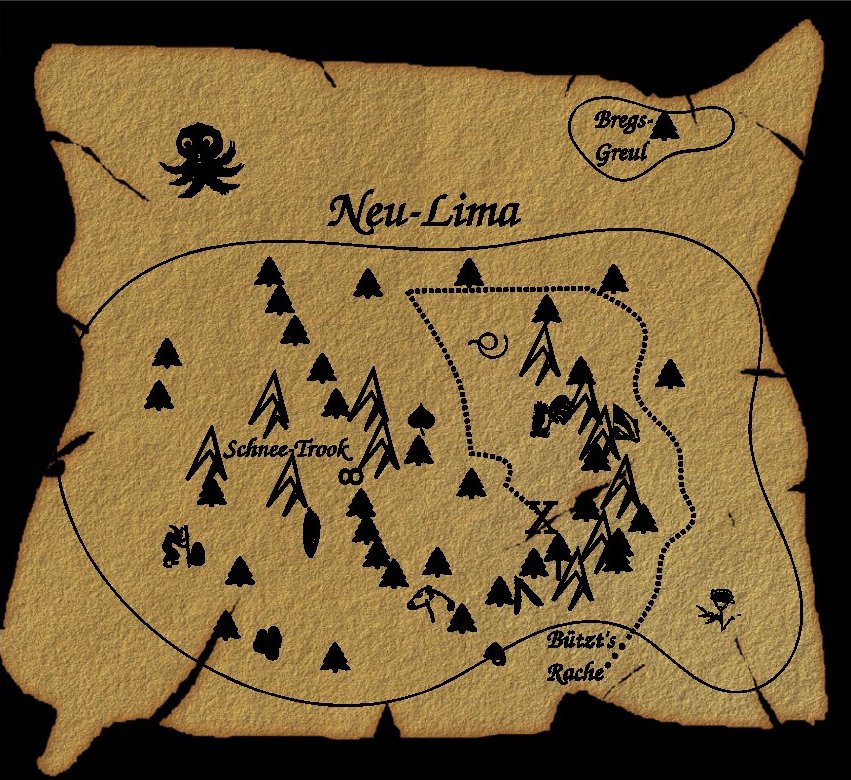 eine Art Schatzkarte steckte. Auf der einen Seite ist eine Insel abgebildet,