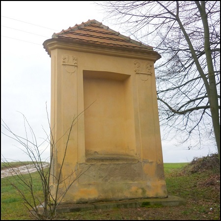 Trojboká hranolová kaplička měla pilastry zdobená průčelí, uprostřed s nikami. Její založení patrně po polovině 18. století je v pověstech spojováno se zažehnáním morové epidemie v městečku Nové Strašecí a okolí.