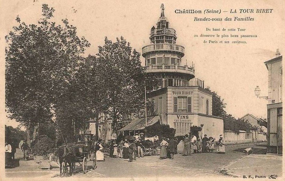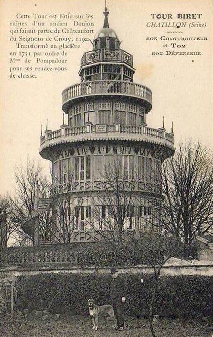 En 1764, le duc Emmanuel de Croÿ, passionné d'astronomie, fait élever un belvédère, véritable observatoire de cinquante pieds de haut sur la butte de la glacière de M. Raffard. La tour est détruite vers 1871-1872 et vingt ans plus tard, François Biret se rend acquéreur du terrain. Il y fait élever une tour en bois de quatre étages qui devient dès 1896, une guinguette très fréquentée. Le propriété disait de celle-ci : « Du haut de cette tour on découvre le plus beau panorama de Paris et de ses environs et, 152 communes à l'œil nu, sur une distance de trente-cinq kilomètres. »