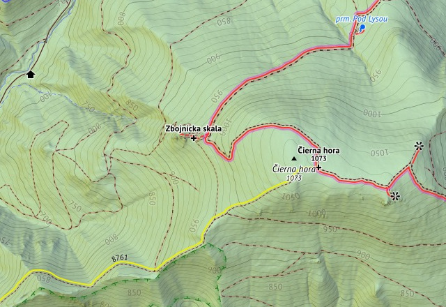 a približne na WP "Odbočka zo žltej" odbočiť doľava a po neznačnom chodníku až ku skalám (3,9 km, 1:45 h)
