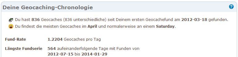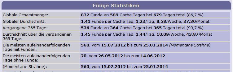 ☻ Es muss ein Kalenderjahr lang jeden Tage ein Cache geloggt worden sein.