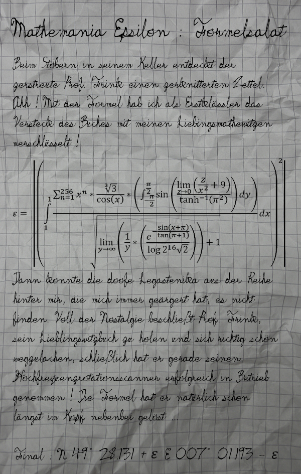 Ein geradliniger Cache ohne versteckte Hindernisse und zum "einfachen" Ausrechnen
