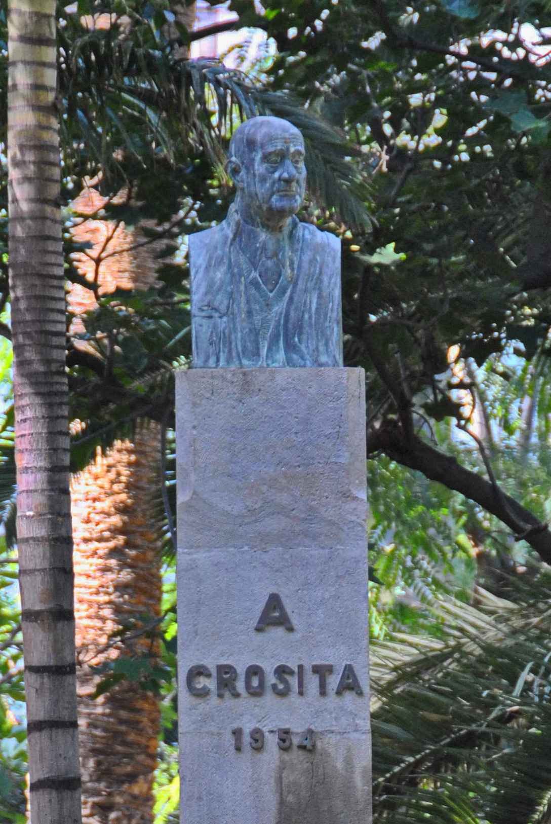Homenaje a D. Diego Crosa.(Santa Cruz de Tenerife, 1869-1942), con un busto de bronce de Nicolás Granados Raimundo (Benamejí, Córdoba, 1900-Santa Cruz de Tenerife 1942). El iniciador de la idea fue el pintor Francisco Bonnín Guerín (Santa Cruz de Tenerife 1869-1942), en el pedestal se lee “A Crosita, 1954” y debajo hay un escudo elaborado en bronce, con la inscripción de dos de sus coplas: “Cuando una canaria quiere a quien la sabe querer, de tanto querer se muere y muestra quiere también”, “Todas las canarias son como ese Teide gigante, mucha nieve en el semblante y fuego en el corazón”. El conjunto del Monumento, pedestal y busto es de 2,75 metros y fue inaugurado el día 12 de octubre de 1954.