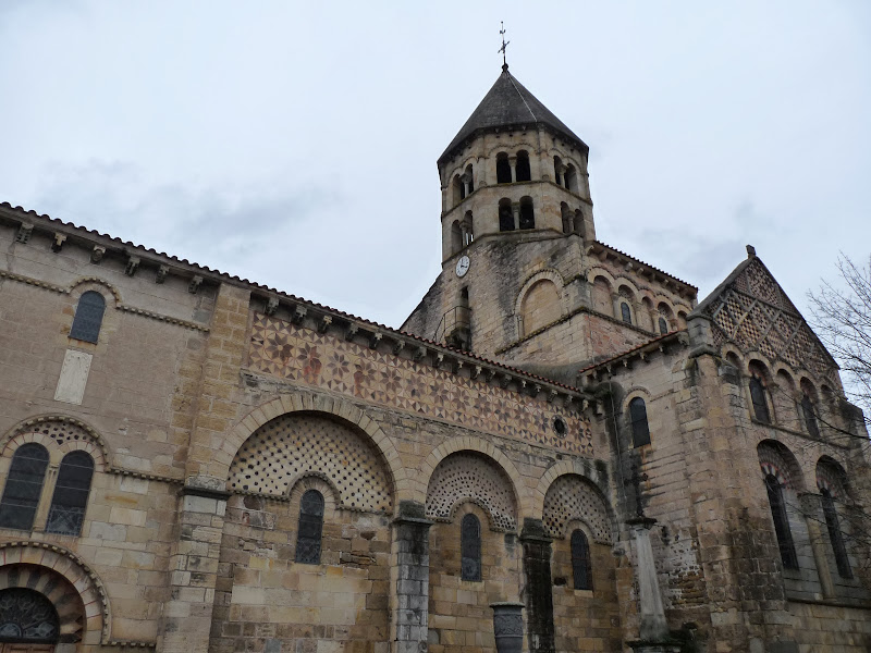 L’église Saint Julien est une ancienne église prieurale qui dépendait de l’abbaye de Sauxillanges. Elle date des XIe et XIIe siècles, mais elle ne conserve de sa construction première que le transept et les nefs. Les constructeurs ont utilisé l’arkose dorée, le tuf volcanique ocre et rouge ainsi que la lave noire. Elle comporte une voûte en berceau brisé, de belles arcades et un vaste déambulatoire, structure identique à celle des grandes églises de Limagne. Les chapiteaux sont très intéressants mais leur décryptage n’est pas évident. A l’extérieur, le croisillon ouest est remarquablement décoré de belles arcades et d’un damier en losanges, chacun étant composé de pierres noires et d’ocres disposées également en damiers. Le même genre de décoration, mais plus récent, se retrouve sur les murs de la nef.