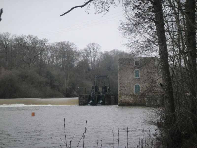 Histoire : L'avant-projet de canalisation de la Mayenne en 1840 prévoyait la suppression de l'ancienne chaussée de Corçu et la réalisation d'un barrage à écluse à l'emplacement de celle de Coulisse, située 300 mètres environ en amont, qui ne commandait plus aucun moulin. Le projet final, approuvé par le ministre le 23 août 1858, a finalement conduit à la construction d'un nouveau barrage à Corçu, une soixantaine de mètres en aval de l'ancien site. Les travaux ont été menés sur les plans de l'ingénieur ordinaire des Ponts et Chaussées Dupuy par les entrepreneurs Genève de Tours et Talichet de Châteauroux, choisis lors de l'adjudication du 14 janvier 1859. Pratiquement terminés en octobre 1861, mais jugés non conformes par l'administration, ils n'ont été réceptionnés provisoirement que le 15 octobre 1863. La maison éclusière porte sur le linteau de la porte d'entrée la date de 1862. E.D.F. a installé une micro-centrale électrique en 1959. Détruite à la suite de crues, elle a été reconstruite en 1986.