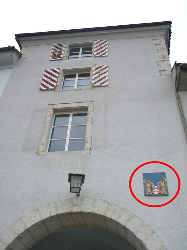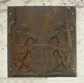 Certains écussons sont des plaques en fonte qui sont posés à différents endroits de la cité.
