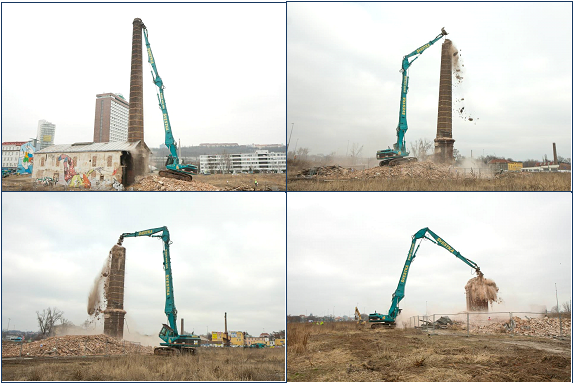 1.3.2014 bylo dílo zkázy dokončeno, zbourána byla jak kotelna, tak komín