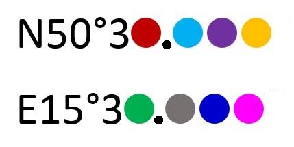 Na místa barevných puntíků doplňte vyluštěná čísla ze sudoku. Výsledkem budou finální souřadnice keše.