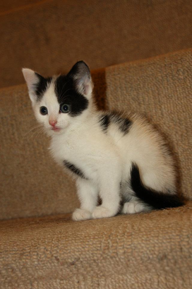 Pinga (from Pinga and Roo) has a 2 year old cat called Cottontail. She's had it from a kitten and she still refers to it as a kitten. This cat is rather daft. It still hasn't learnt how to use the cat flap to go out, hates the rain and snow, and regularly forgets where its food is. It meows asking for food even when the bowl is full and you have to pick it up and take it to the food! One thing all of us except Pinga would say is you have to BEWARE of it. If you walk past her and she's in a bad mood she attacks you! Cottontail was a rather cute kitten, if you like cats. Here's a picture for you all to admire.