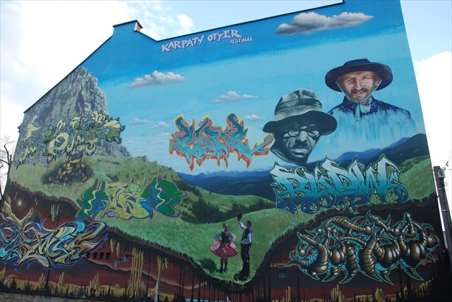 O miejscu: Podczas festiwalu sztuki alternatywnej Małopolska –Karpaty OFFer powstało niezwykłe malowidło. Na rogu ul.Grodzkiej i alei Wolności dziewięciu grafficiarzy z całej Polski zamalowało fronton ściany scenami oraz postaciami kojarzącymi się z Sądecczyzną. Z góry spogląda na nas Epifan Drowniak, czyli Nikifor Krynicki.Obok niego Wojtuś z Rytra znany nie tylko sądeczanom, ale także licznym turystom odwiedzającym te strony. Najbliższe miejsca gdzie można zobaczyć graffiti to okolice Domu żołnierza oraz Zespł Szkół nr 3 im Bolesława Barbackiego.