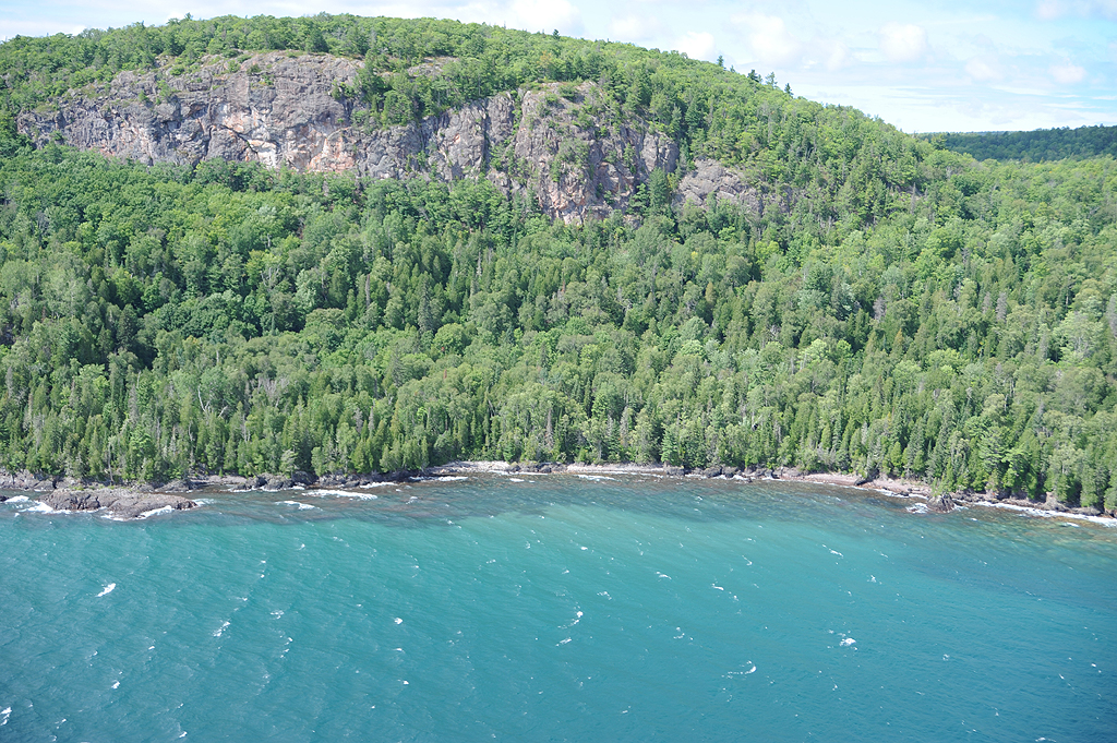 Figure 1 - Photo of Lake Superior shoreline showing Bare Bluff. Source:http://superiorwatersheds.org/shorelineviewer2011/photos/Keweenaw/0916.JPG