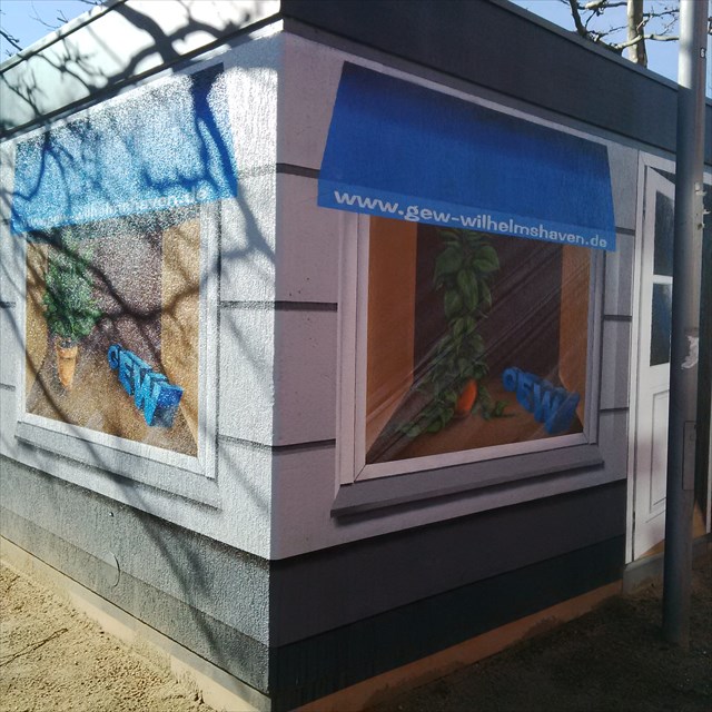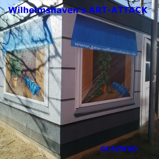Dieses ist eines von mehreren Trafohäuschen in Wilhelmshaven, welches angemalt ist, und in Zusammenarbeit mit Herzilein und Bänsch-Man gibt es mehrere Caches dieser Serie hier.
