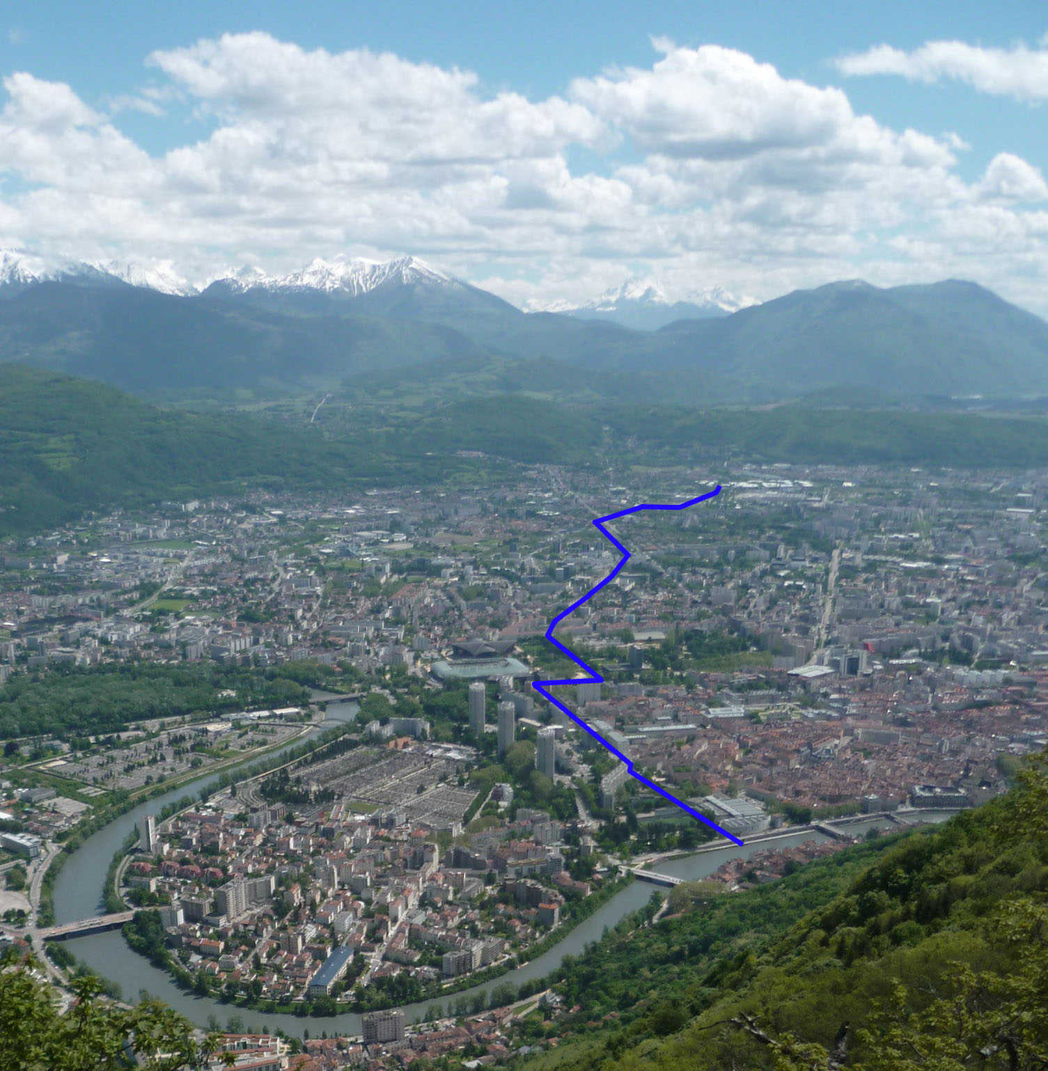 Oui, située sur la rive gauche de l’Isère, au niveau du musée de Grenoble, c’est bien le ruisseau Le Verderet que vous voyez sortir sous la voie sur berge. L’entrée de la canalisation enterrée se situe sur la commune d’Eybens à 6 kilomètres de là. Ce cours d’eau chemine ainsi sous terre en traversant la Rocade Sud. Toujours enterré, il passe ensuite entre la Villeneuve de Grenoble et la ZA des Poulardes. Il continu en longeant l’avenue Jean Perrot, l’Abbaye et la Bajatière. Il traverse le Parc Paul Mistral puis contourne le Jardin des Plantes. Il coule sous la Cité Administrative puis sous le Musée.