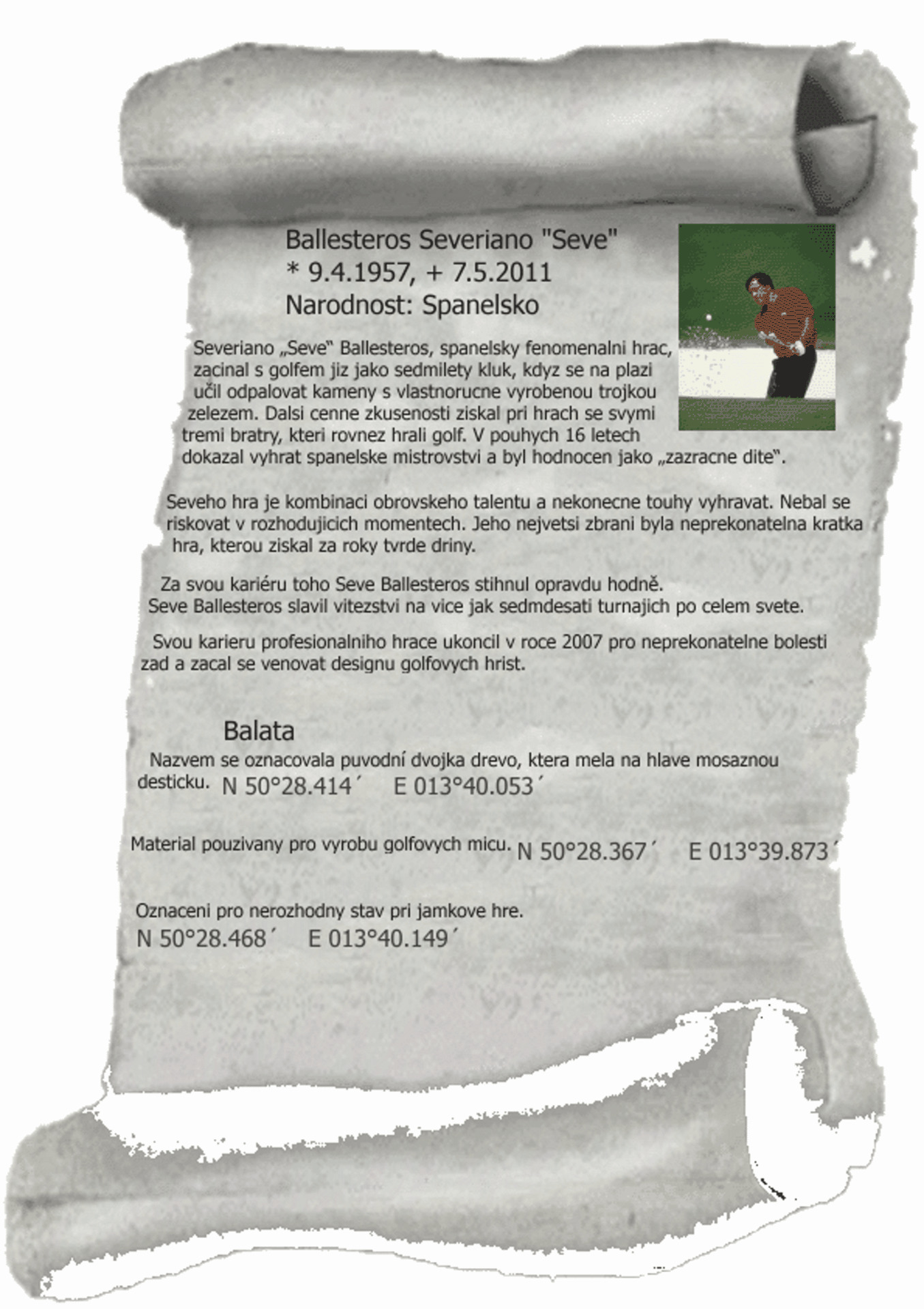 Po prijezdu na parkoviste, zajdete do recepce golfoveho klubu a oznamte, ze zde budete parkovat a mate povoleni od vedeni klubu, dodrzujte pravidla silnicniho provozu. Cestou nevstupujte na hraci plochu golfovych hrist. Sleduj waypointy a praporky, celkem cca 8 az 9 km.