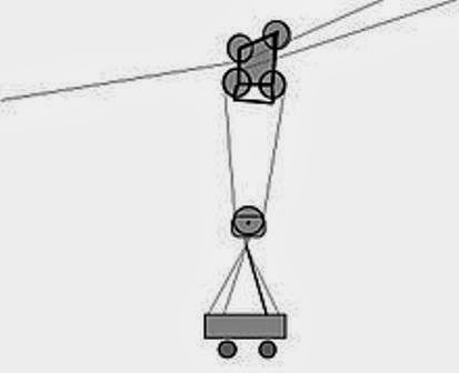 Es un artilugio para el transporte de materiales, consistente en un sistema de elevación de una carga mediante cables.
