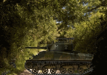 Sergeant Culin moved to the front of his tank steel blades to overcome the hurdles of the hedgerows. These blades were made from Czech hedgehogs that the Germans had placed on the Normandy beaches.