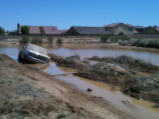A short drive on a dirt road will bring you to the area of the mud lake and where the vehicle was stuck. No mud whompin' is required and I wouldn't recommend it either. The cache is fairly large and holds some goodies including a brand new ready-to-be-activated TB on a tow truck. Happy hunting and be careful when you go mud whompin'.