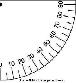 Record the dip direction and angle. For instance, SW (or 225º) at 65º.
