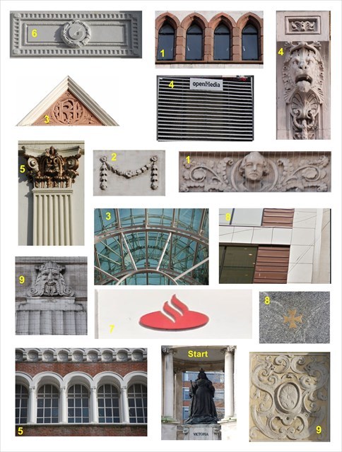 Start next to the statue of Victoria and stop when you get to Hanover Street. The trick to solving this cache is to place the pictures in the order they appear along the two streets. As you find them write down the yellow number on the image in that order.