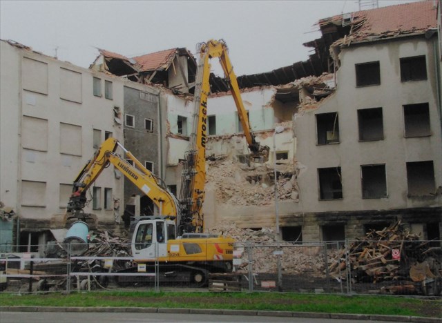 Demolice nejstarší budovy frýdecké nemocnice 5.května 2010