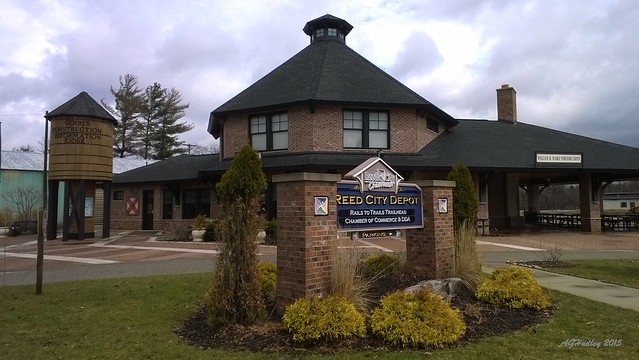The rail line through Reed City got its start in 1860 when the Flint & Pere Marquette Railroad began constructing a line between Mt. Morris and Saginaw. It was opened in January of 1862. It reached Flint in December of that year, Holly in 1864, Midland in 1867, and Averill in 1868. By the end of 1870, the line had extended to Clare and Lake. It finally reached Evert in September of 1871 and Reed City in December that same year. By 1874, the line extended to Ludington where a cross-lake break bulk and railroad car ferry service was created. On January 1st, 1900, the F&PM, Chicago & West Michigan, Detroit, Grand Rapids & Western were consolidated as the Pere Marquette, becoming the largest rail line in Michigan. The PM grew to a peak of 2393 miles with lines extending into Ontario, Indiana and Ohio and elsewhere with trackage rights. In 1929, the C&O had a controlling interest in the PM and consolidated the PM into the C&O in 1947.