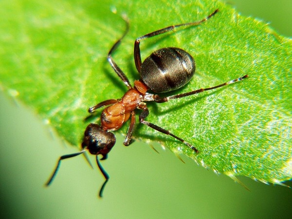 Je teplomilny blanokridly hmyz. Ma cernohnedy zadecek, na kterem je vyrazny leskly pruh. Jeho pas je velmi utly, spojeny se zadeckem uzlovitou spojkou. Hrud je cervenohneda. Jeho vnejsi kostra je pevna. Ma 6 nohou, na hlave 2 tykadla, na kterych jsou cichove a hmatove smyslove organy. Tykadla a koncetiny slouzi take ke komunikaci mezi mravenci. Tento druh mravencu ma i zakrnele zihadlo, obsahujici kyselinu mravenci. Pomoci silnych kusadel porcuje potravu, popr. slouzi k transportu a obrane.