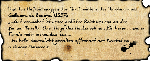 Bei deiner Recherche als Indiana Schäng zu dem verschwundenen Schatz der Tempelritter bist du auf eine Schriftrolle gestoßen: