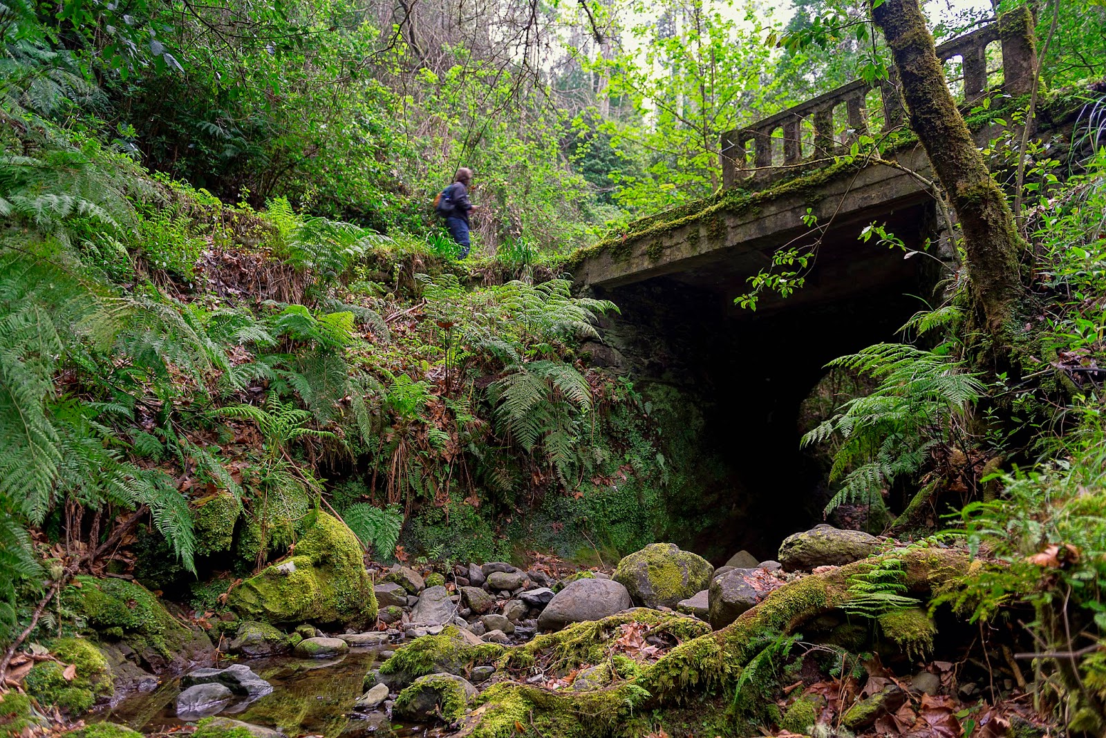 Our cache is under a small bridge on the existing path, which passes a small watercourse. To find the cache you should leave the trail and go down near the water. Note the floor, it may be a bit slippery due to fallen leaves and the humidity.