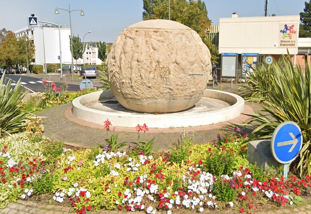 Le bassin d'un diamètre de 6 mètres est situé au centre d'une place qui a pris le nom de la fontaine : la place de la Fraternité. Sabine Cherki a entièrement réalisé cette fontaine d'un diamètre de 3,5 mètres. Elle se compose d'une ronde d'enfants modelée sur une sphère.