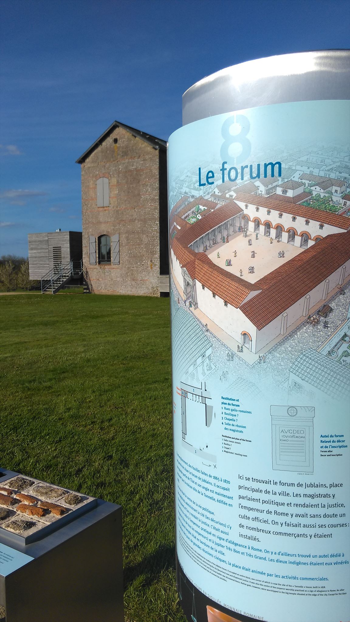 Les allées de sable qui traversent les terrains entre le forum et le temple matérialisent le tracé des principales rues gallo-romaines. Vous pourrez vois que des fouilles sont toujours actuelles, afin de d'avoir des détails sur l'habitat à l'époque romaine.