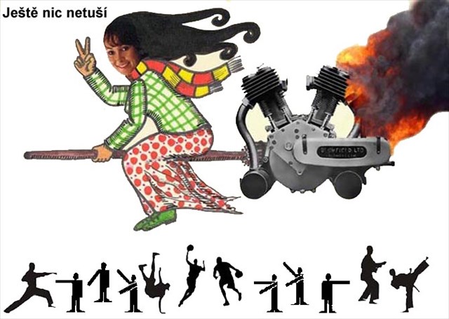 Poté se vrátila zpět, na koště namontovala motor a odletěla směrem na Ostravu.