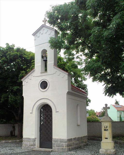 Lobečská kaplička se zvonicí stávala od 18. století na staré lobečské návsi v dnešní ulici Ve Starém Lobečku. Zvon v kapličce byl z roku 1781. Kaplička byla zbourána 2.3.1967 v rámci příprav na stavbu nové lobečské školy. Na zvonu byl znázorněn obraz sv. Jiří, jak zabíjí draka, a nad ním dvě skupinky andělů. Pod obrazem sv. Jiří vlevo byla písmena I.C.S. znamenající pravděpodobně iniciály zvonaře Johana Christiana Schuncka. Svatojiřské patrocinium je považováno za důkaz, že kaplička byla starobylého původu. Za první republiky a ještě za války do roku 1942 zde zvonila paní Dolanská. Vyzvánělo se když někdo zemřel a při pohřbu. Při rekvizici zvonů za druhé světové války požádala městská rada 11.4.1942, aby byl zvon v kapličce ponechán, neboť má víceúčelovou funkci a je jediný na pravé straně Vltavy. Žádosti nebylo vyhověno, zvon byl sejmut a uložen, nebyl však poslán na roztavení a po válce byl opět zavěšen do zvonice. Posledním lobečským zvoníkem byla paní Kolářová. Při likvidaci kapličky v roce 1967 se zvon ztratil. Vedle kapličky byl v roce 1869 postaven kamenný křížek o celkové výšce cca 2 m. Po povodni v roce 2002 byla na křížek připevněna destička s ryskou označující kam až sahala v Lobečku voda. (Josef Stupka, Kulturní a historické památky Kralupska, 2005) V roce 2012 byla kaplička s ohradní zdí znovu postavena za finančního přispění Ing. Jaroslava Kaňky a Města Kralupy nad Vltavou a v červnu roku 2013 byla vysvěcena pomocným biskupem pražským Václavem Malým.