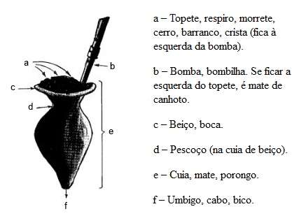 Um aparato fundamental para o chimarrão é a cuia, vasilha feita do fruto da cuieira ou do porongo, que pode ser simples ou mesmo ricamente lavrada e ornada em ouro, prata e outros metais, com a largura de uma boa caneca e a altura de um copo fundo, no formato de um seio de mulher (no caso do porongo) ou no de uma esfera (no caso da cuieira).