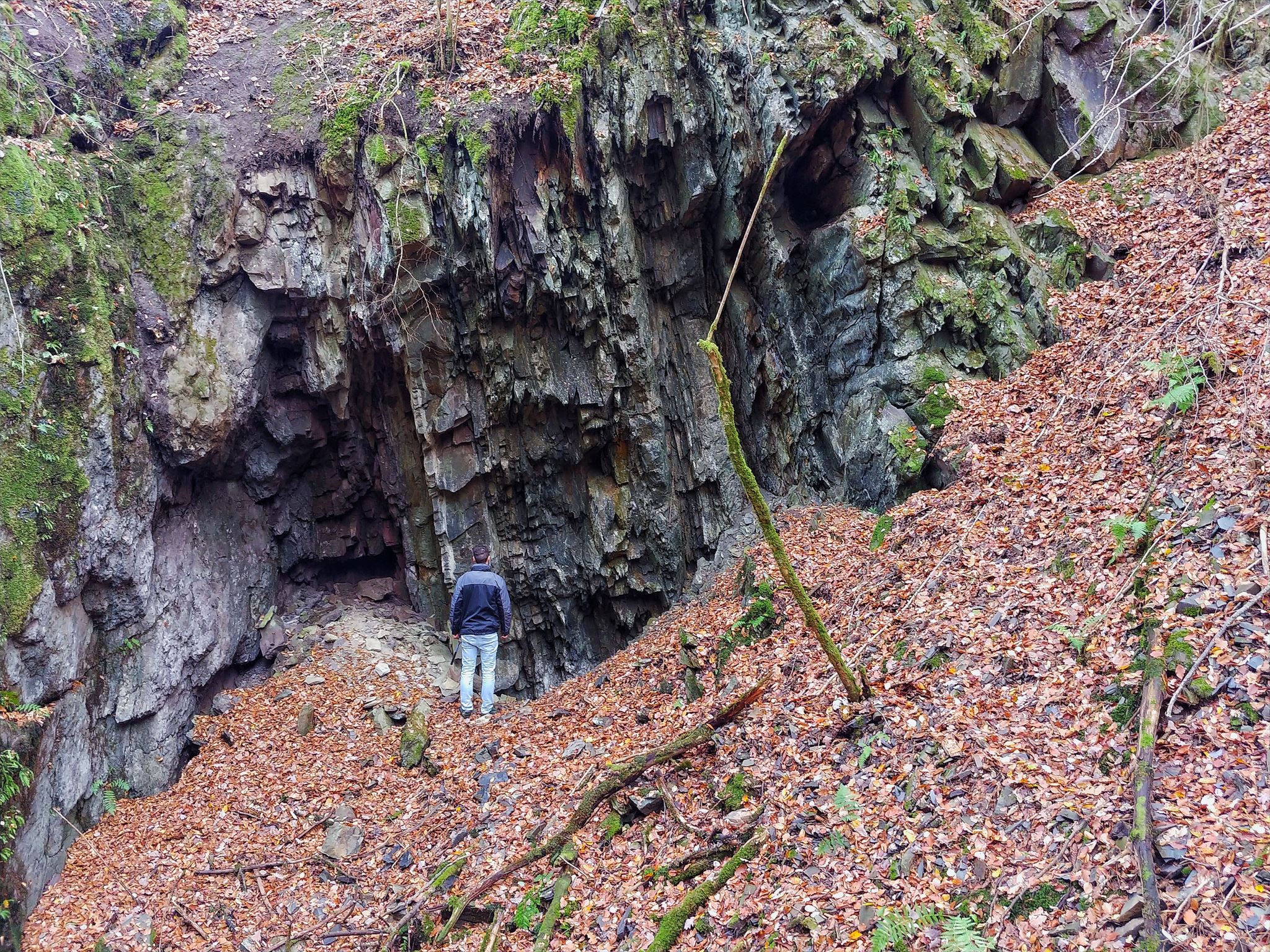 Der Ort, den ihr sucht, ist ein tiefes Loch. Es ist vermutlich Teil der Abraumhalde der Grube "Gesegnete Hoffnung". Von diesen gibt es in dieser Region viele und allesamt sind sie ein "Vermächtnis des Bergbaus".